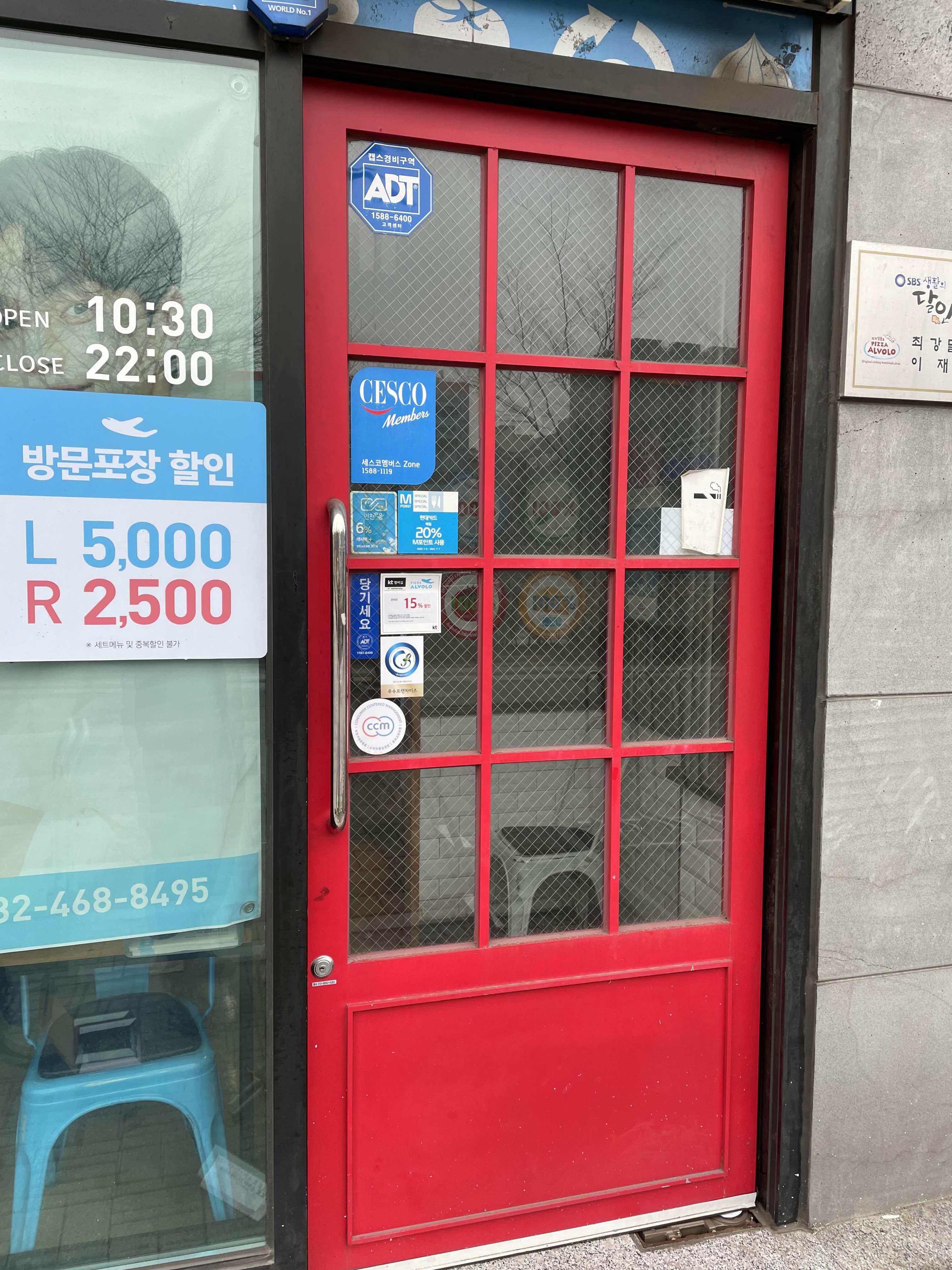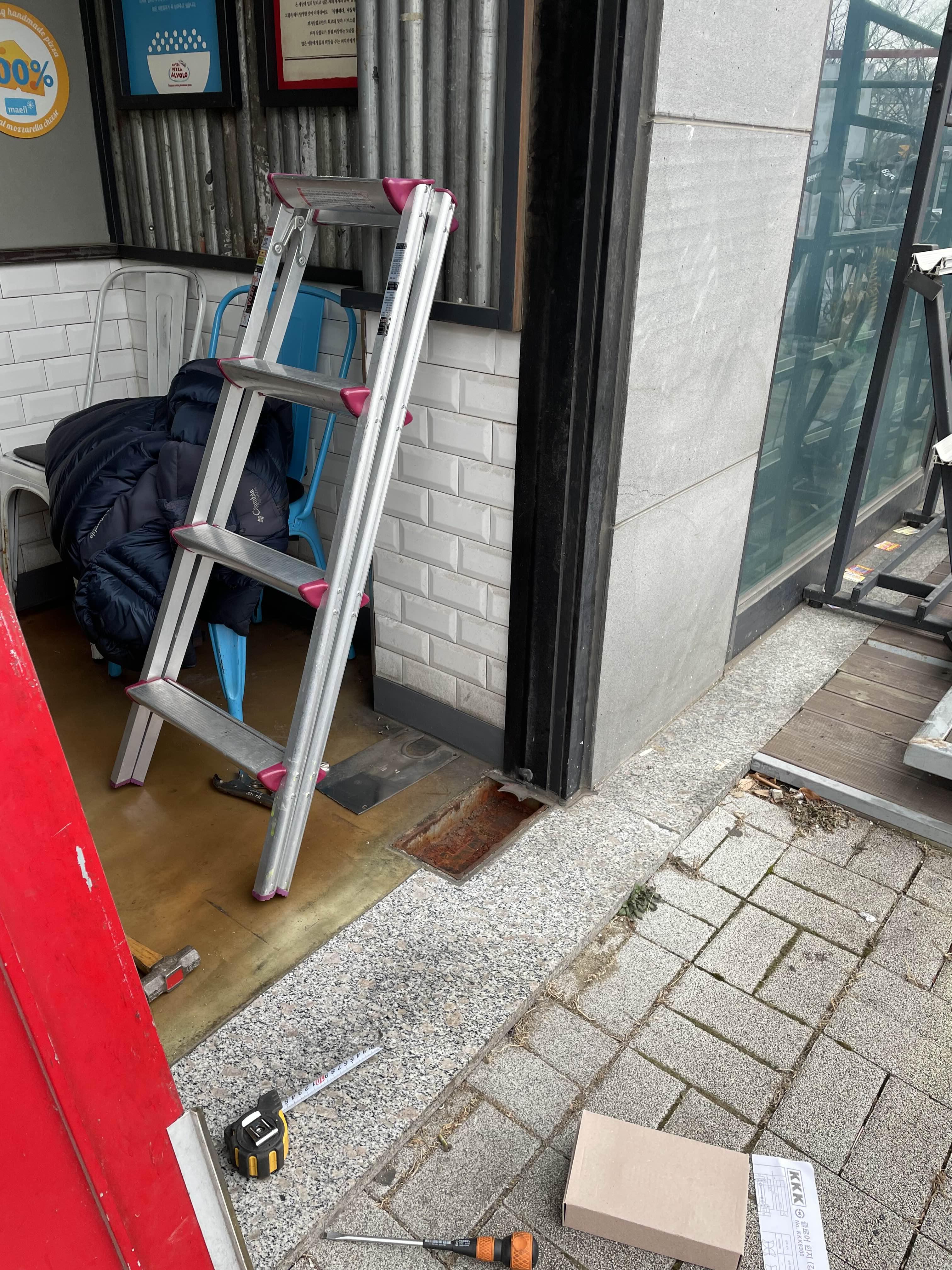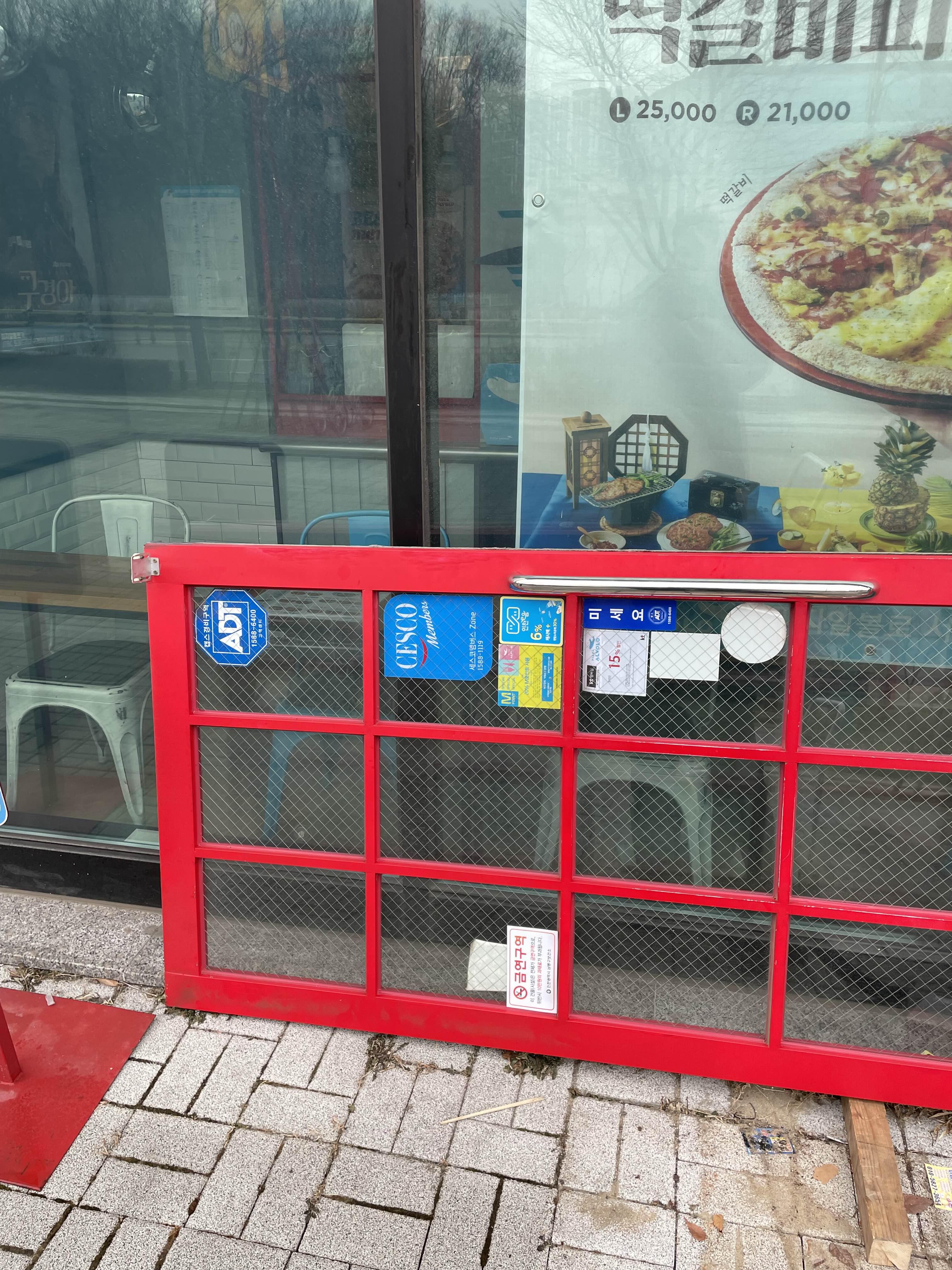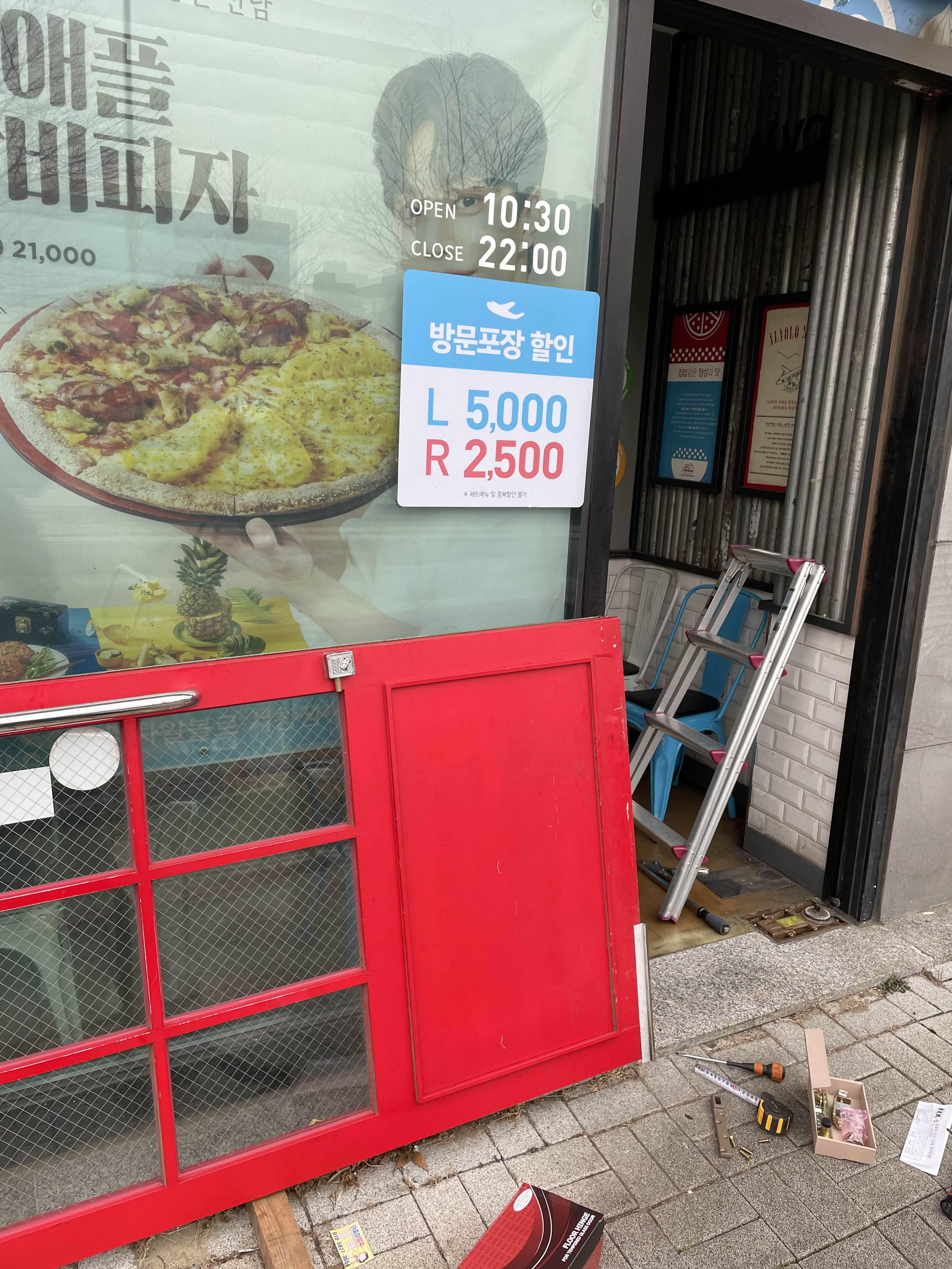오늘의 서창동 피자집에서의 유리문수리가