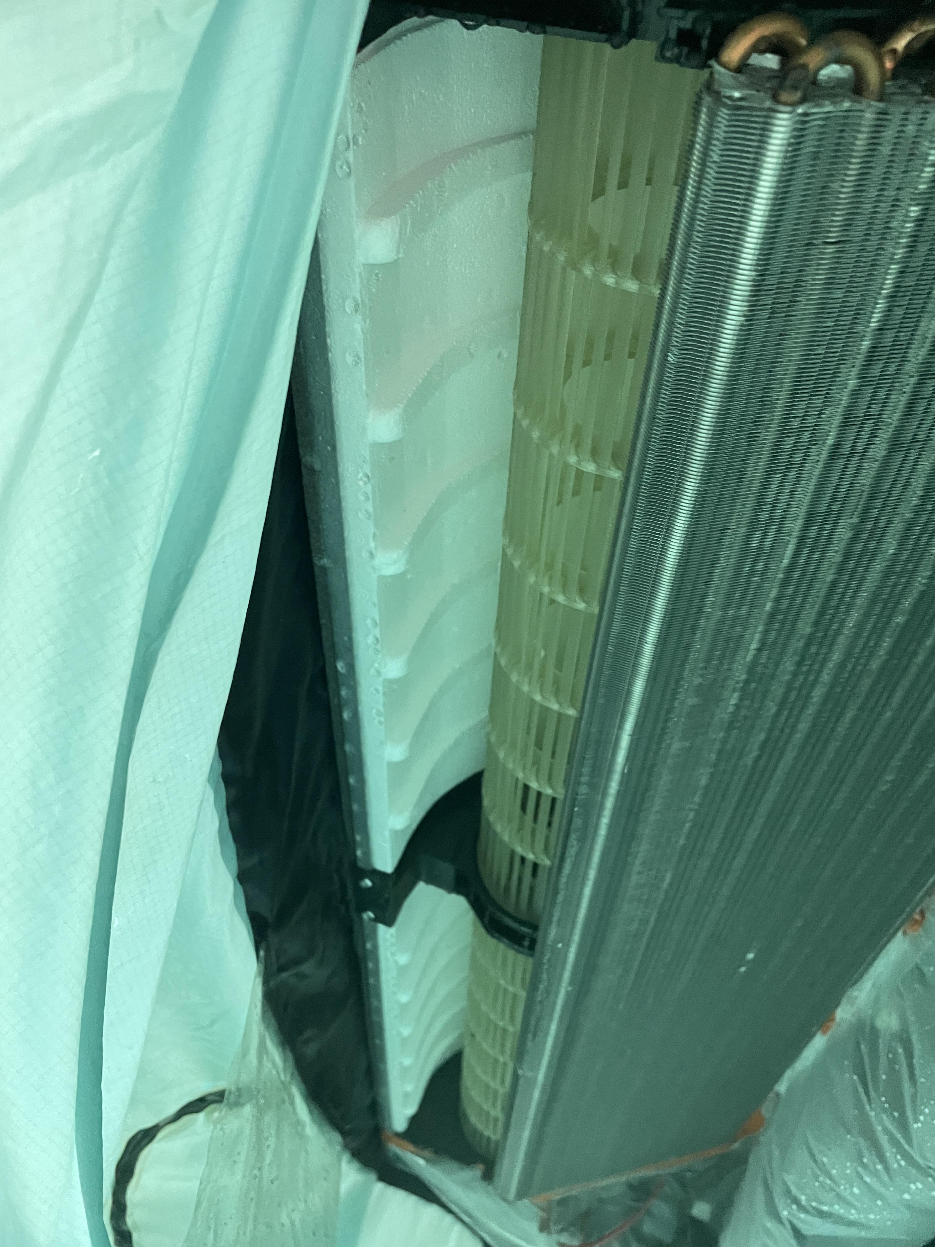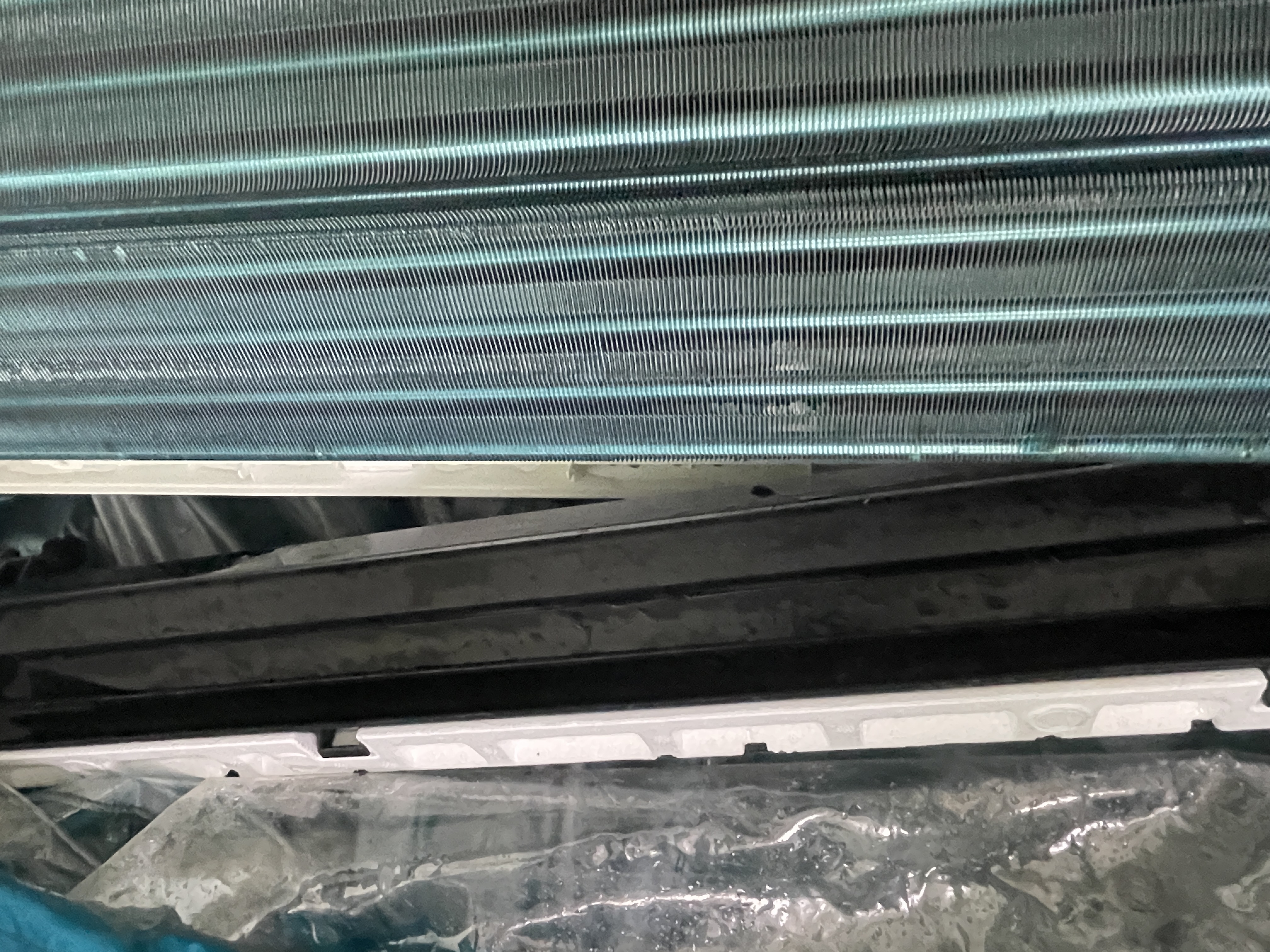 벽걸이 에어컨 청소 전과 후의 모습 (위 청소 전)