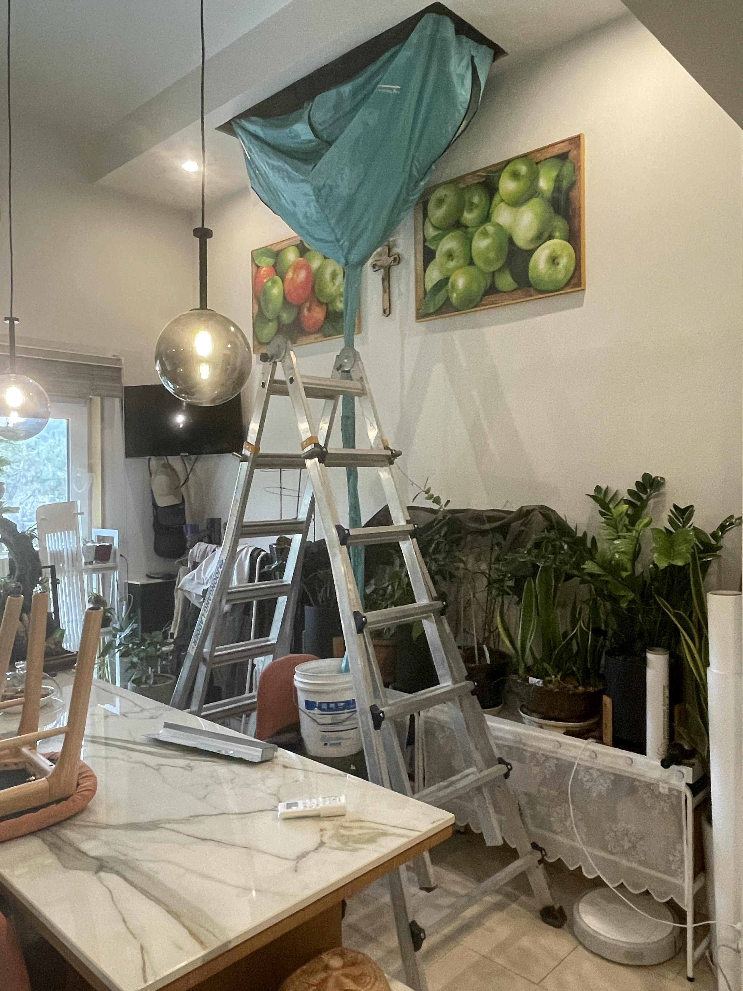 산업용 사다리를 펼쳐 놓고 작업을 해드렸습니다.