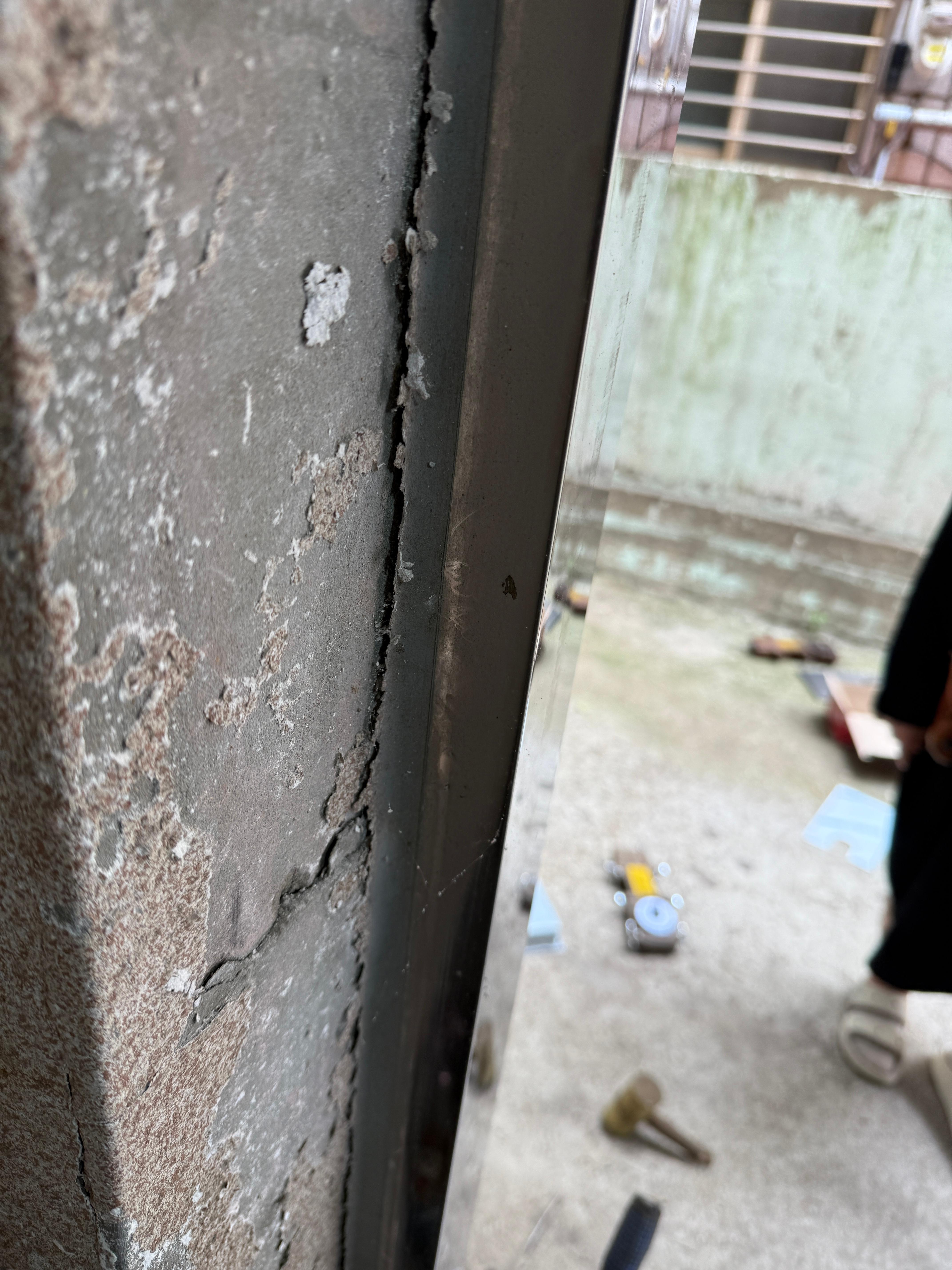 벽이 밀고 오면서 문틀의 간격이 좁아졌습니다.