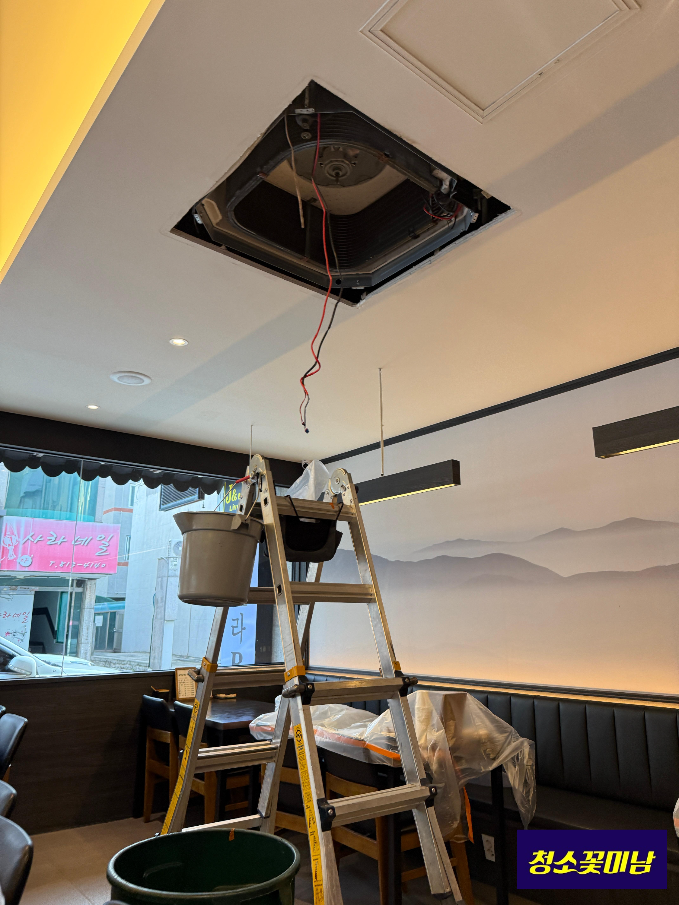 삼계탕집 시스템 에어컨 3대 청소 현장