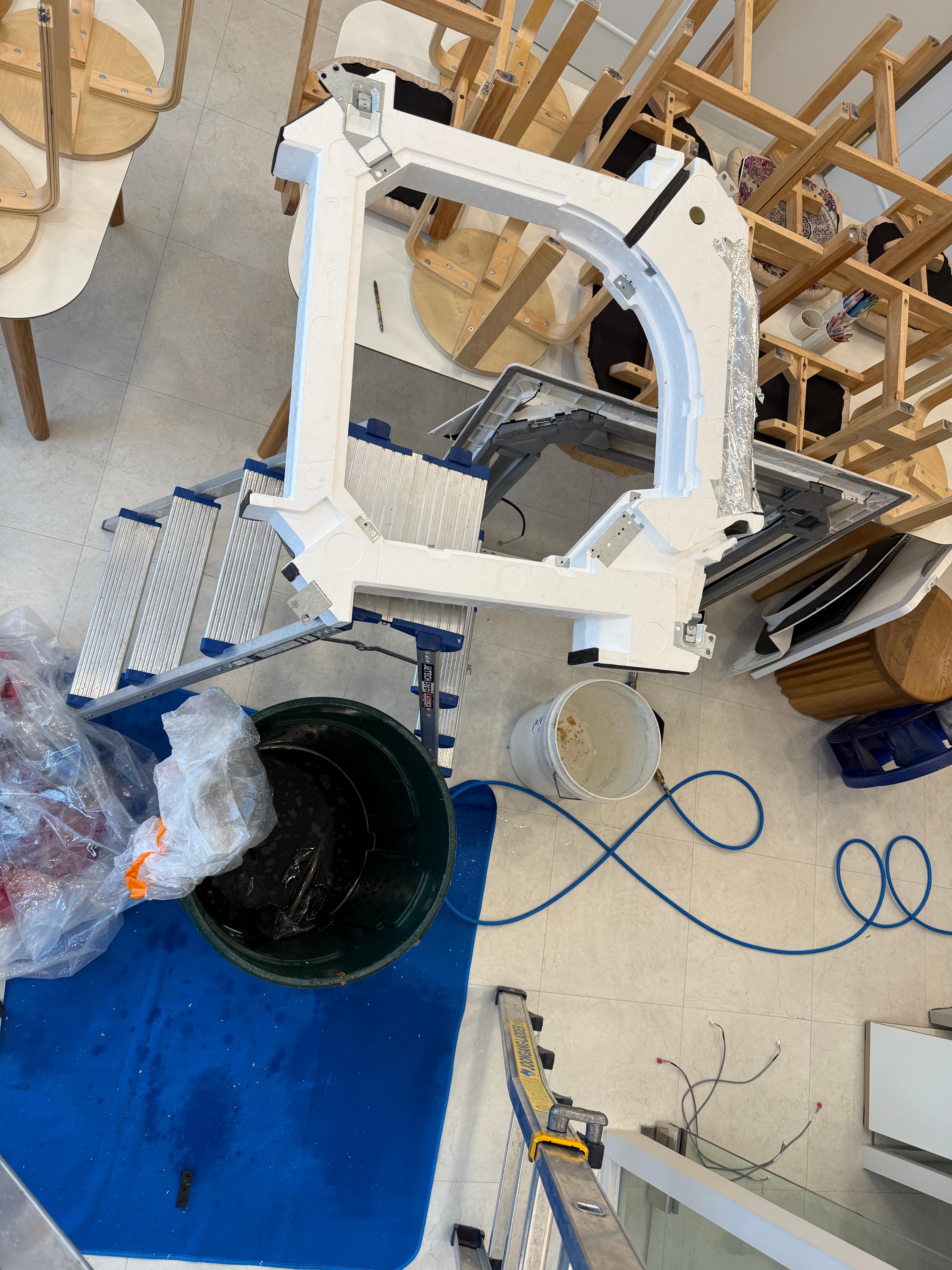 천정 높이가 조금 있었기에 4단 사다리를 펼쳤습니다.