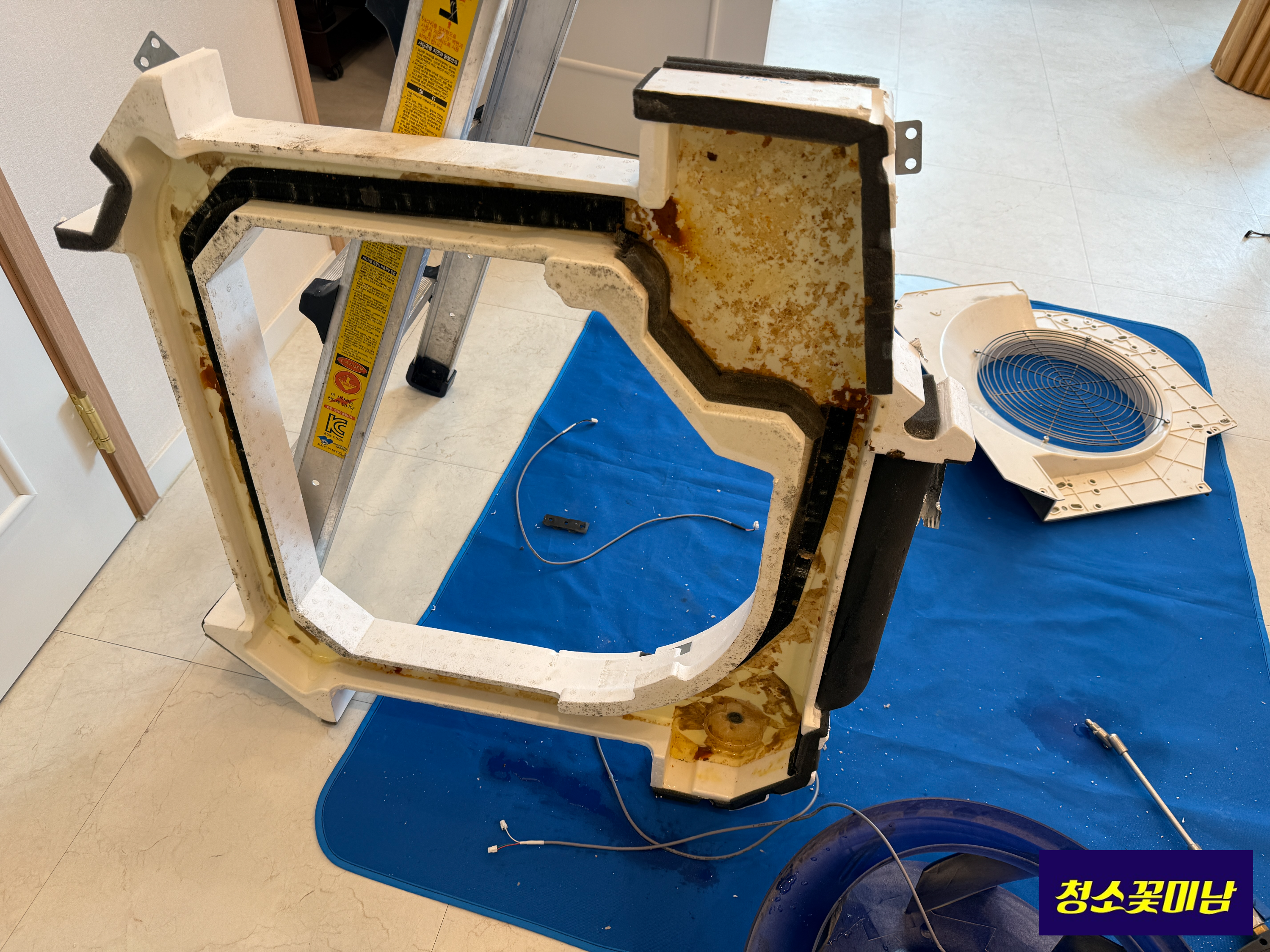 아주 무더웠던 날 진행된 에어컨 청소 작업