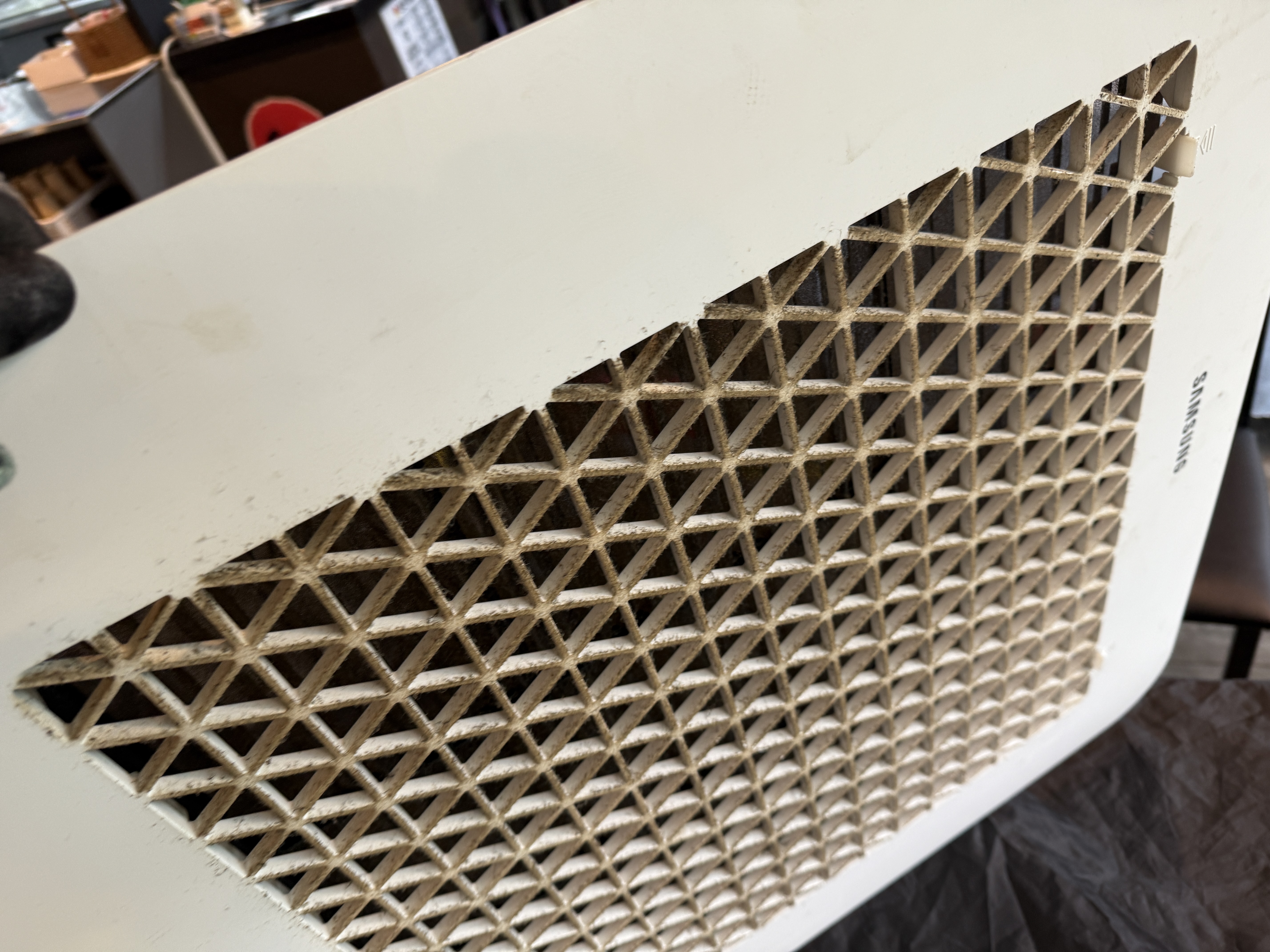 기름때가 많이 낀 경우 냉방력이 약화될 수 있습니다.