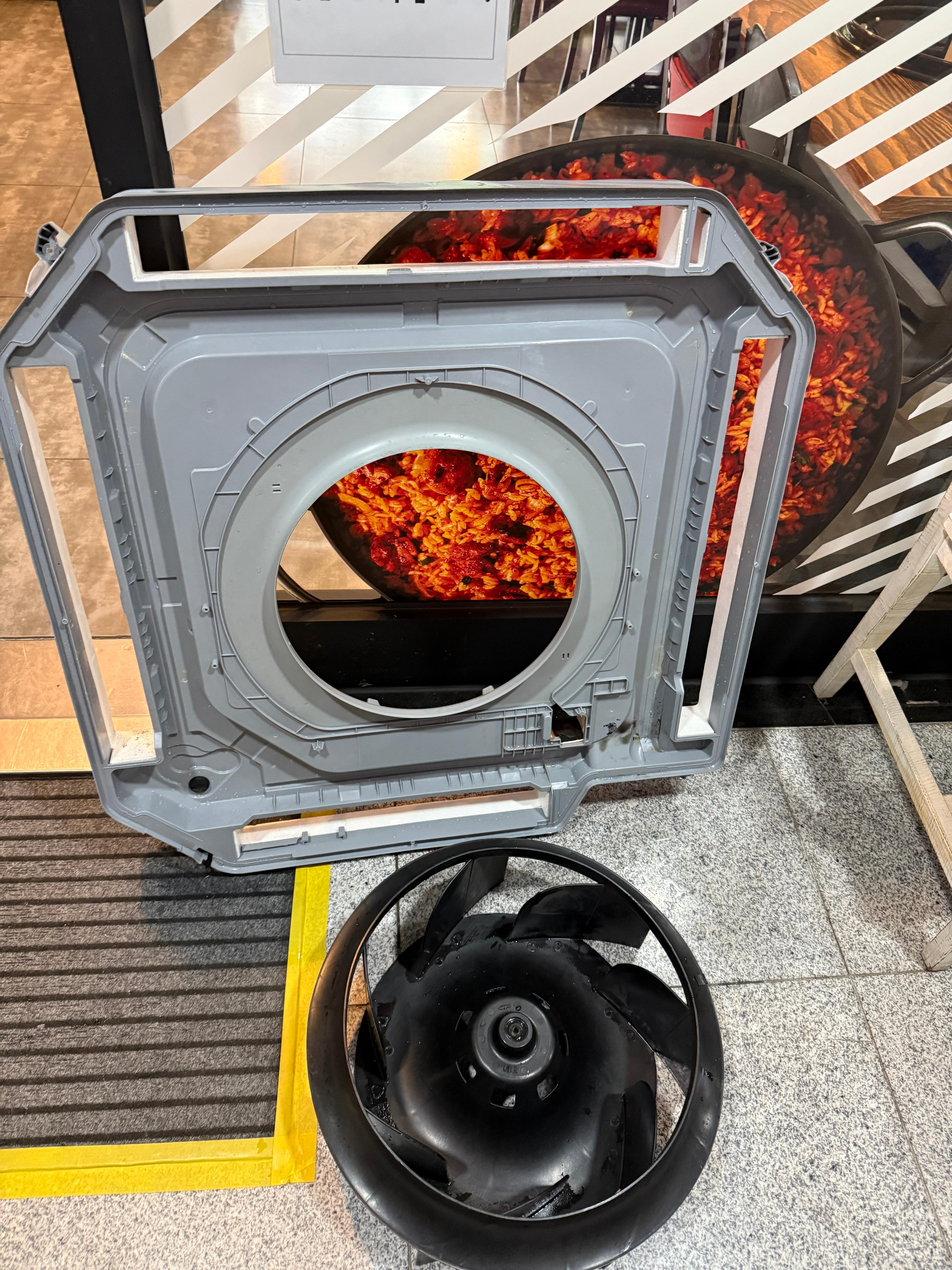 송풍팬과 먼지망의 엄청난 기름때