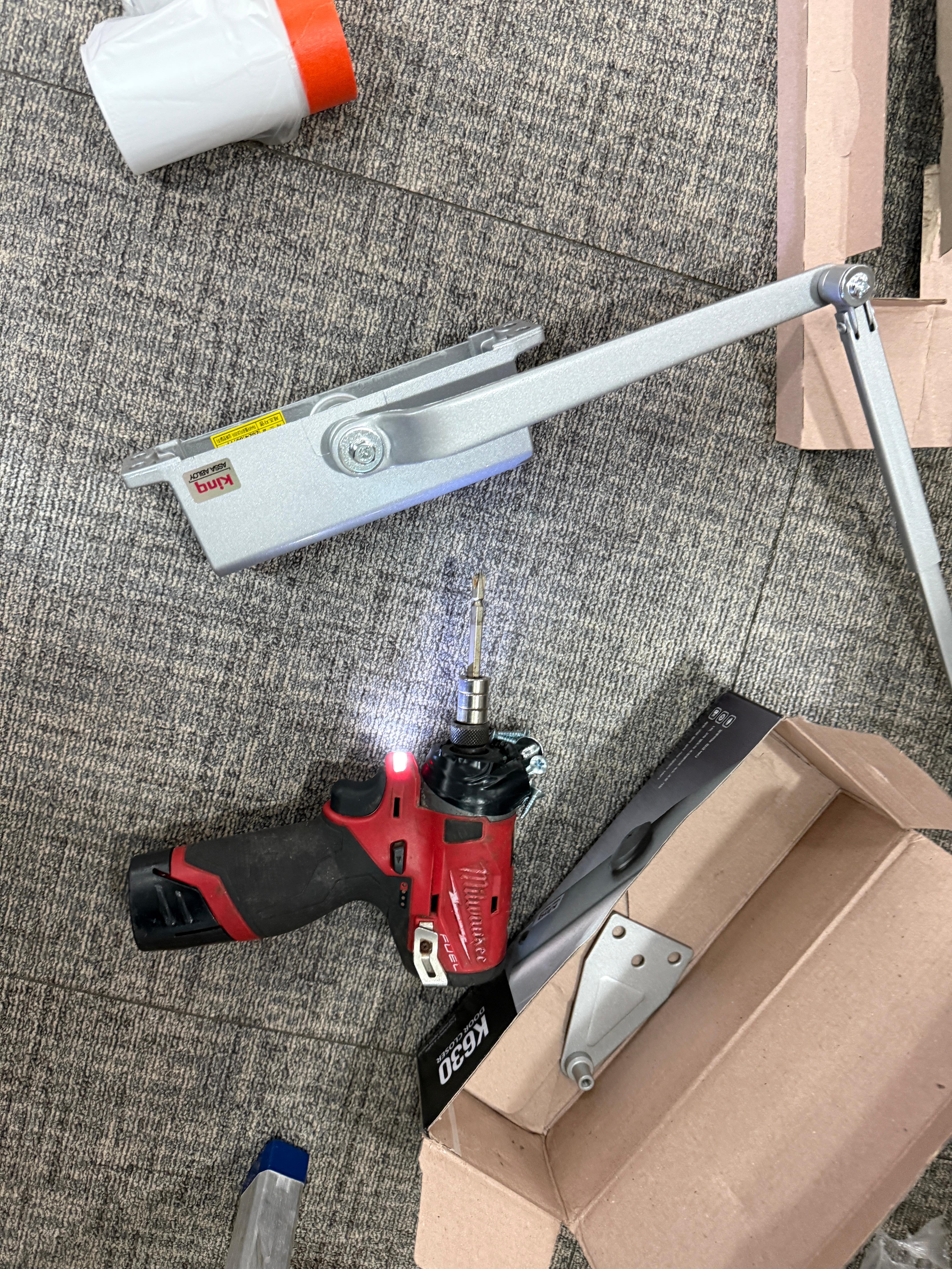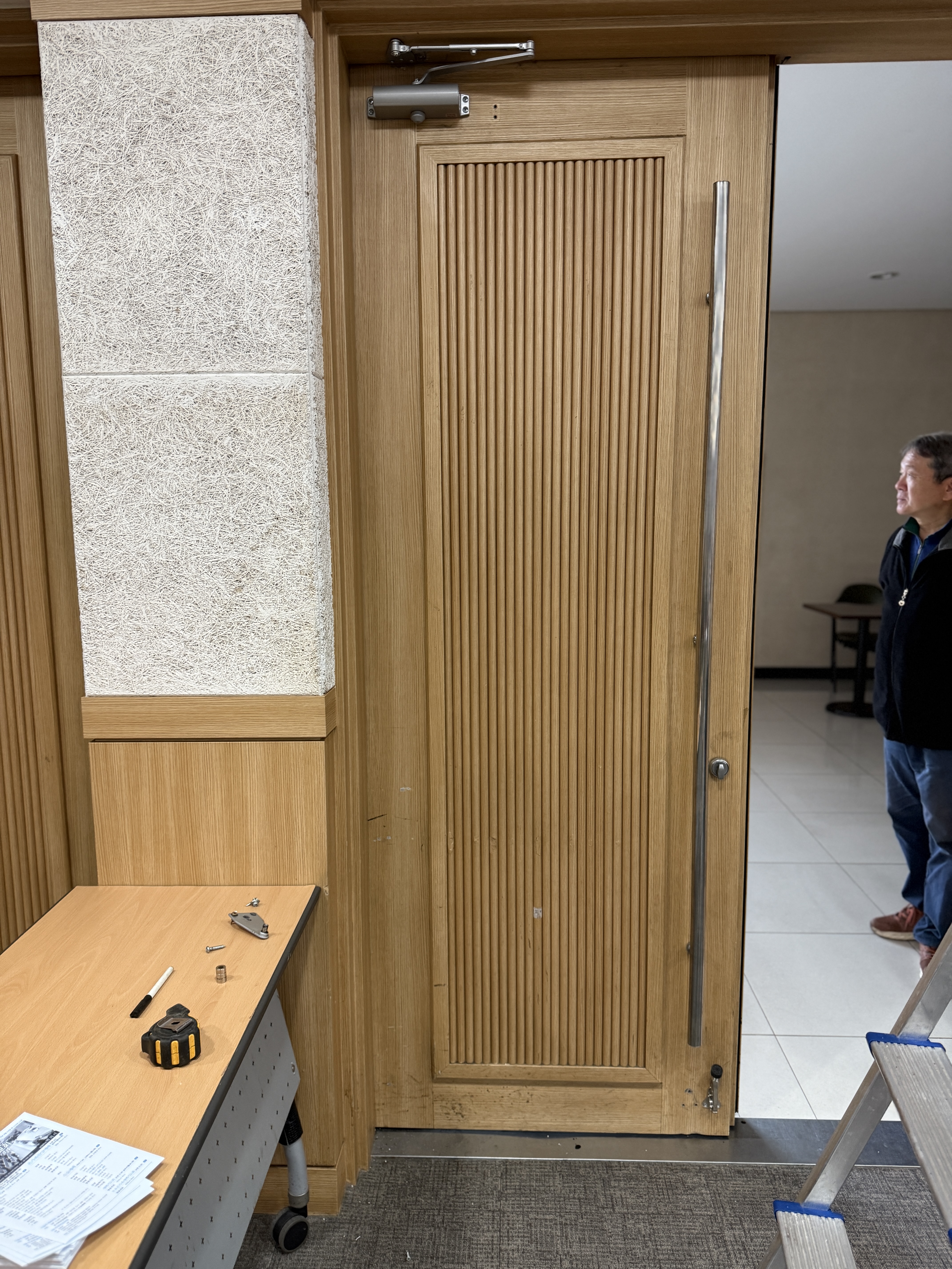 위 문에 새롭게 도어클로저를 설치할 것입니다.